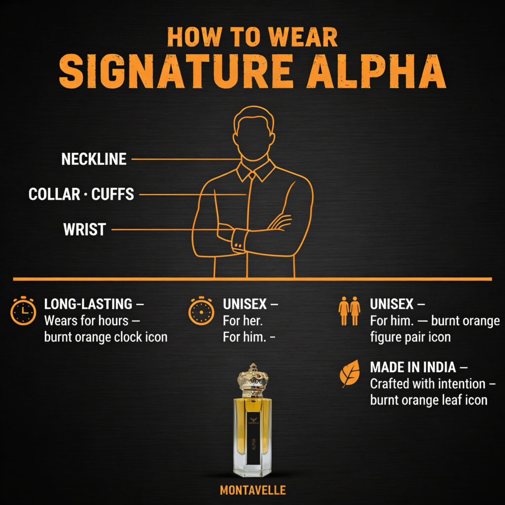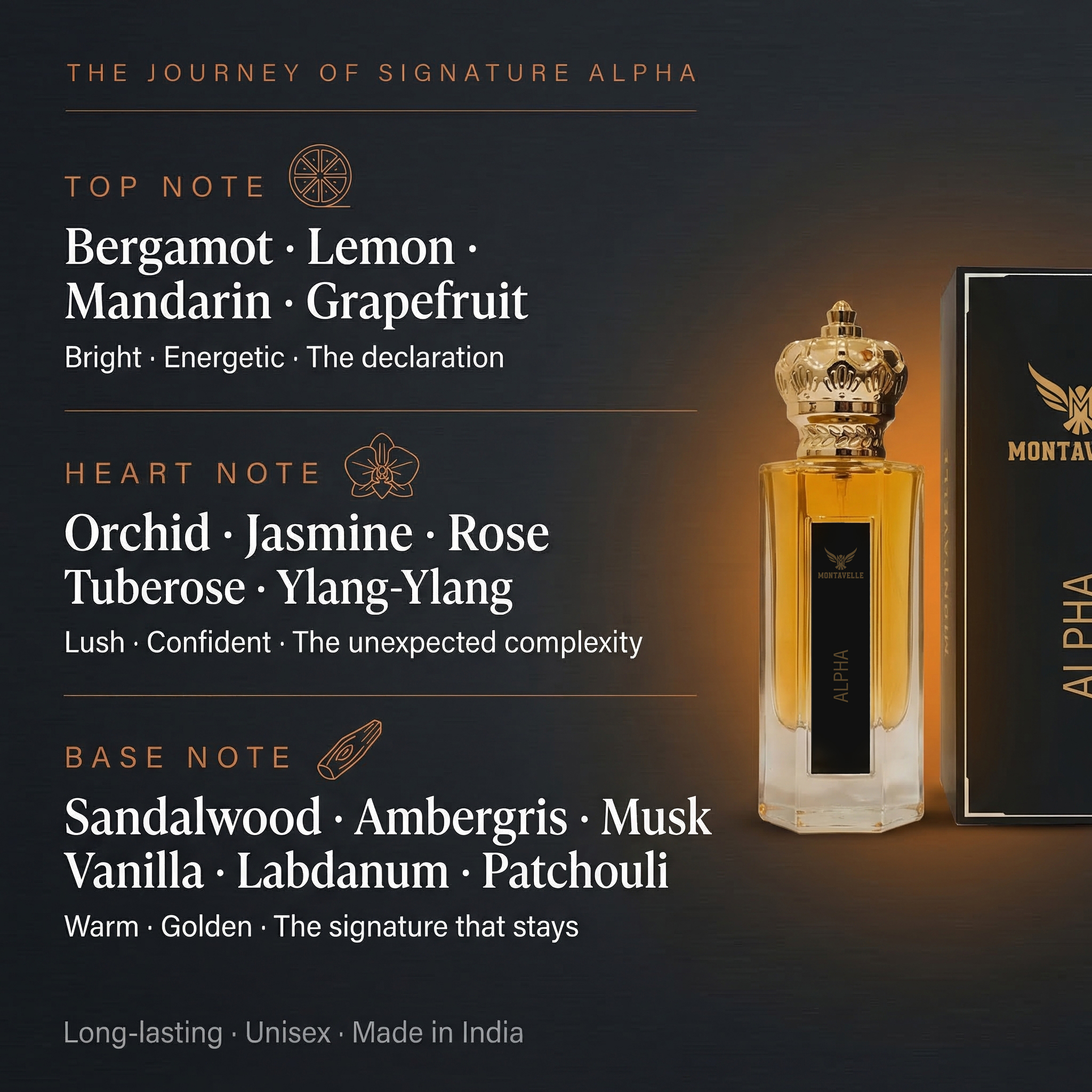 Crafted for leaders, Alpha opens with citrusy bergamot and lemon, blooms into orchid, and settles into creamy sandalwood. It’s fresh, balanced, and unforgettable — just like your presence.