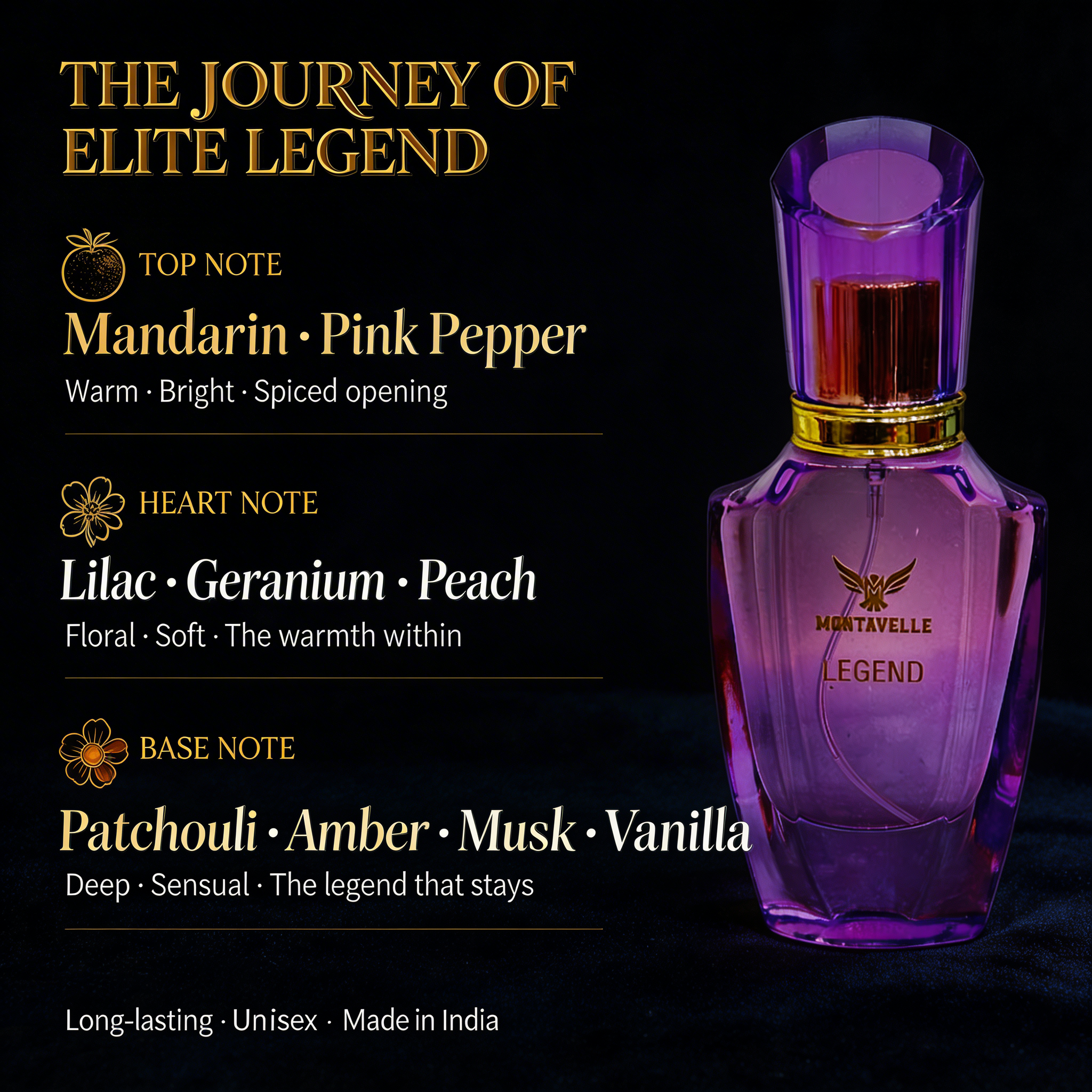 Bold yet floral, Legend mixes delicate lilac with earthy patchouli and sparkling mandarin. It’s a fragrance for the storyteller, the dreamer, the one who leaves a lasting impression.